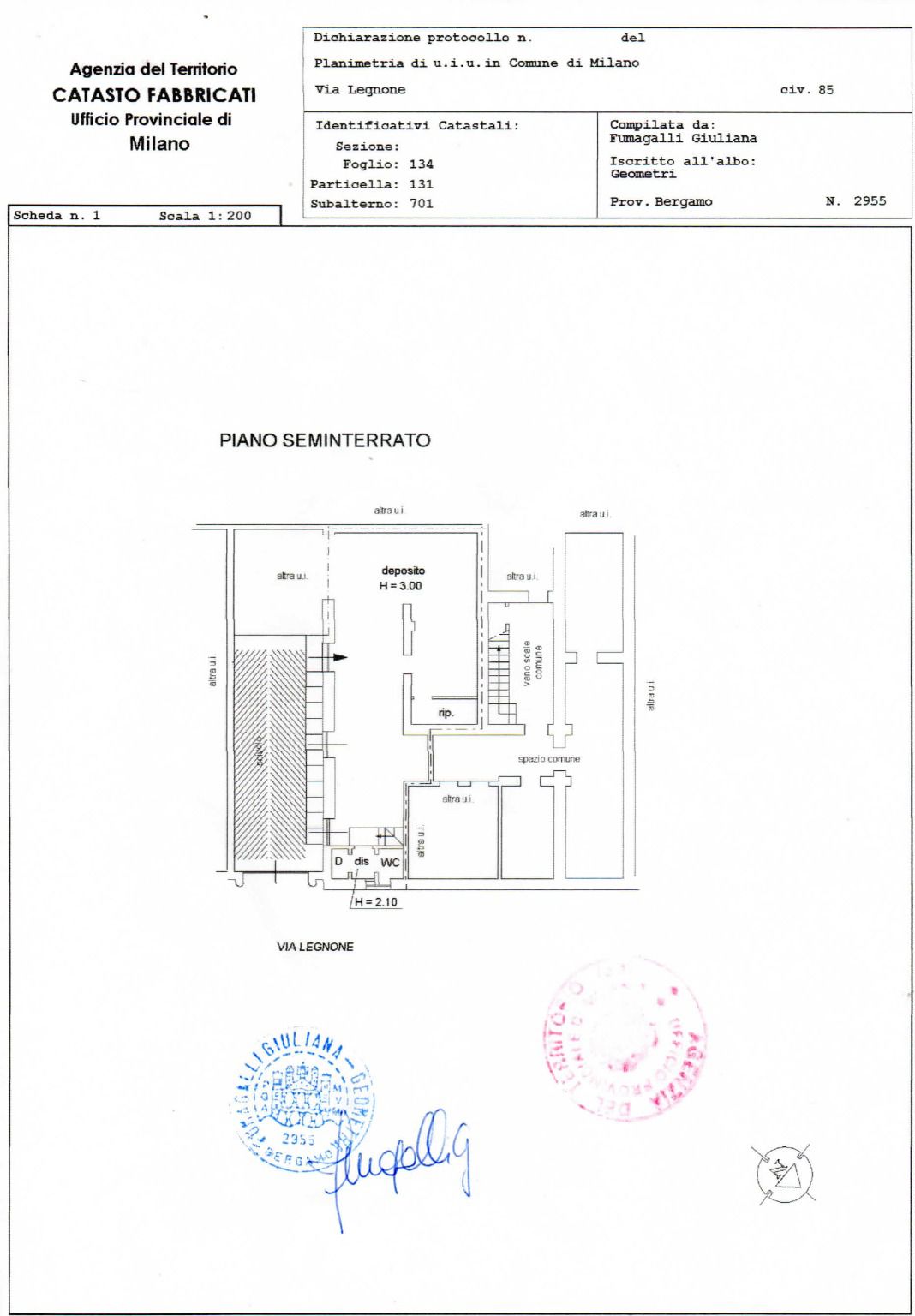 Sull'immobile, attualmente accatastato C/2, è stata già presentata pratica di cambio di destinazione d'uso in categoria C/3.