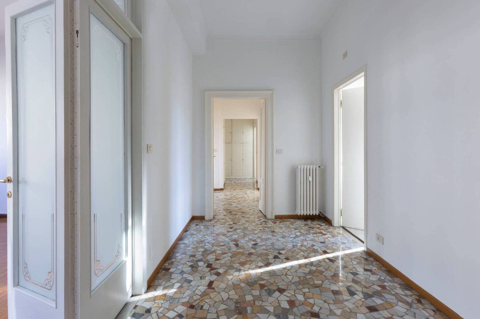 La porzione immobiliare presenta serramenti con vetrocamera, porte interne a doppio battente, pavimenti in parquet e palladiana in ottimo stato di manutenzione, porta blindata. L'impianto di riscaldamento è centralizzato con valvole e contabilizzatori. Completa la proprietà un'ampia cantina e un solaio.