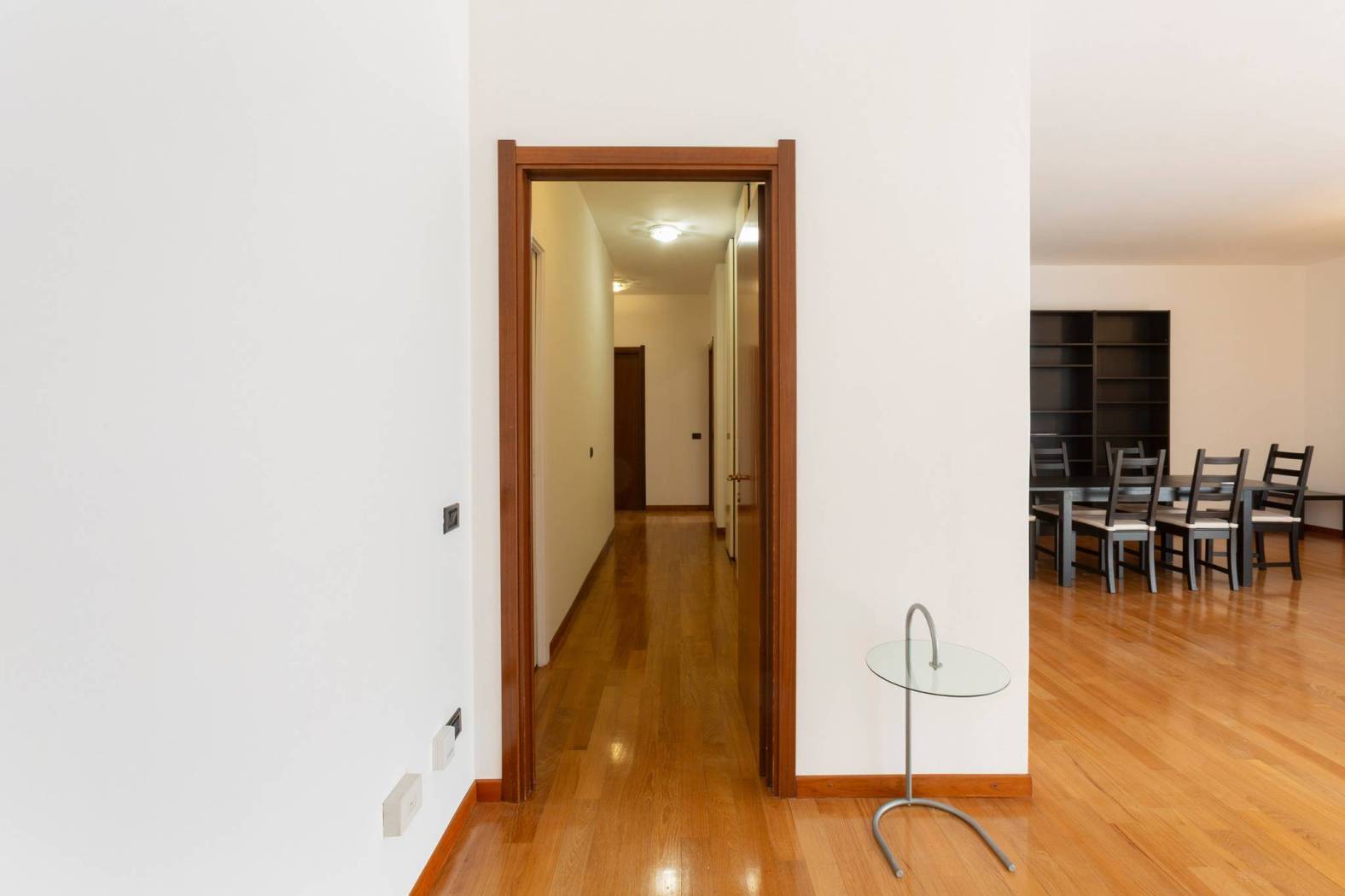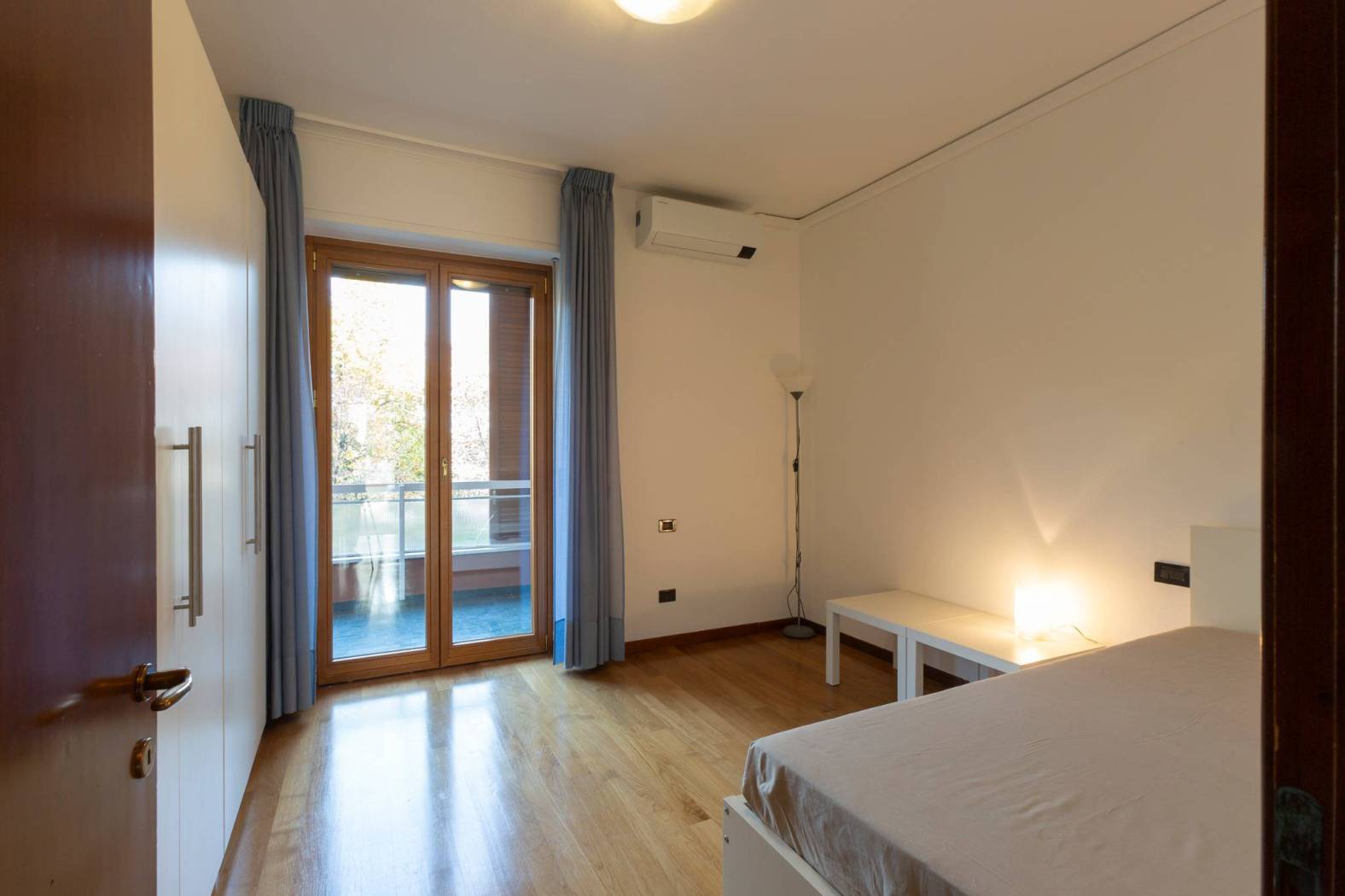 L'appartamento, parzialmente arredato, si presenta in ottime condizioni, con pavimenti in pregiato parquet, serramenti in legno con doppi vetri, aria condizionata, porta blindata, cassaforte, tapparelle elettriche, zanzariere, impianto di riscaldamento centralizzato.