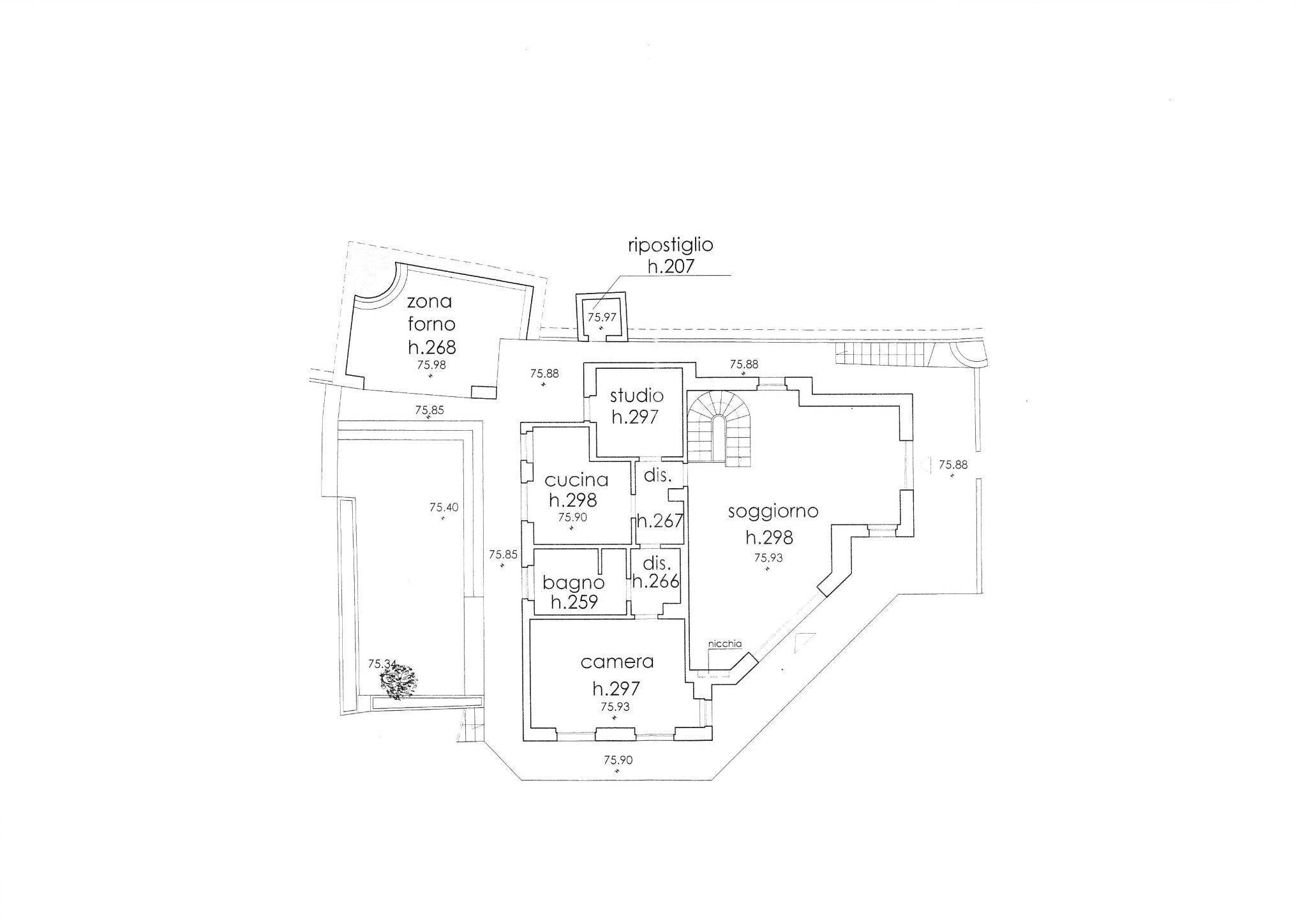 Da ingresso su strada si accede al giardino e alla villa ove troviamo l'ampio salotto con camino e zona pranzo, la cucina abitabile, un'ampia camera matrimoniale con bagno e ulteriore camera/studio dai possibili differenti usi.