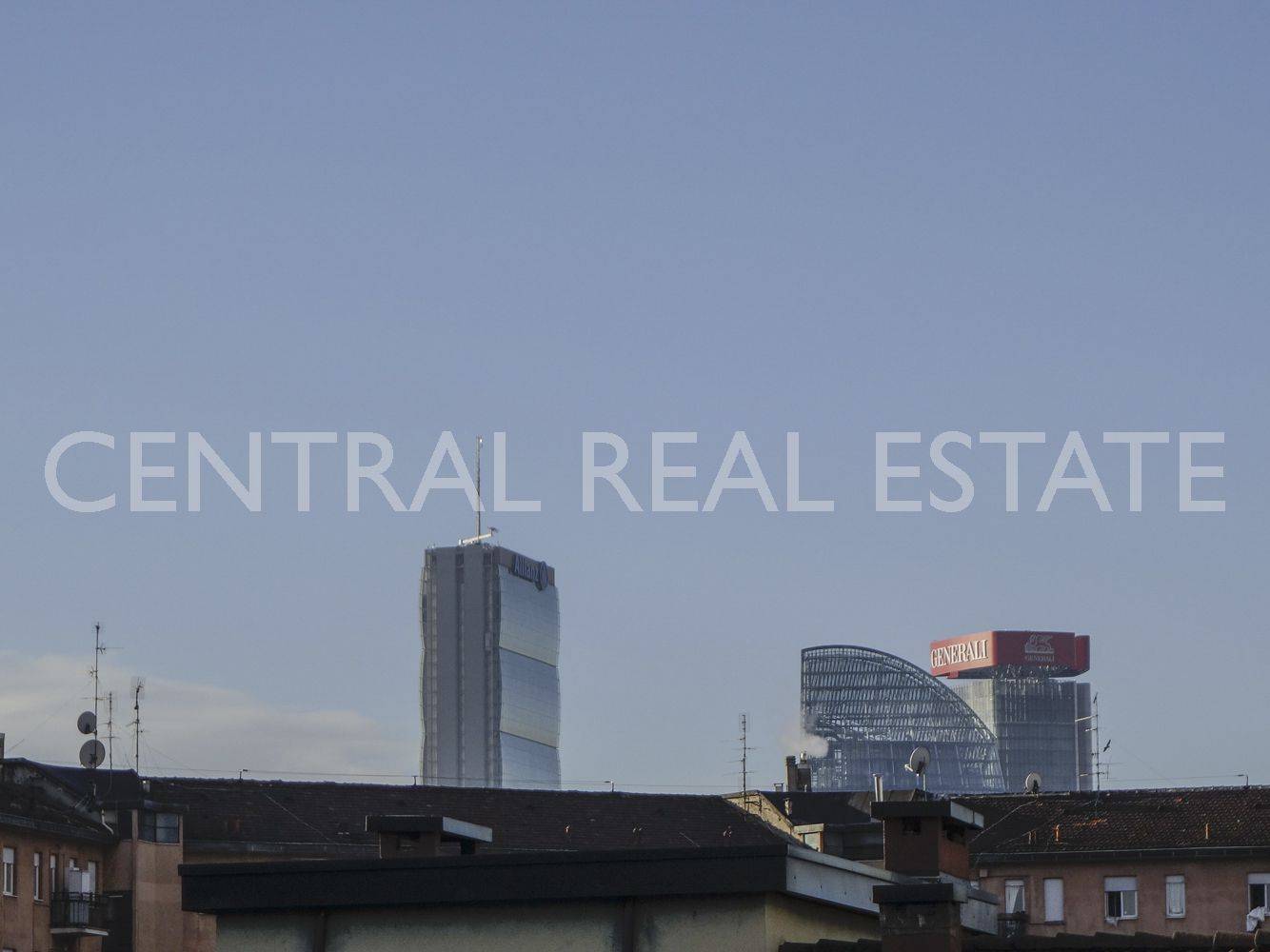 La porzione immobiliare di 78 mq. è posta al quarto piano in pregevole contesto condominiale dotato di ascensore e corte interna e gode di ottima esposizione e vista aperta su City Life.